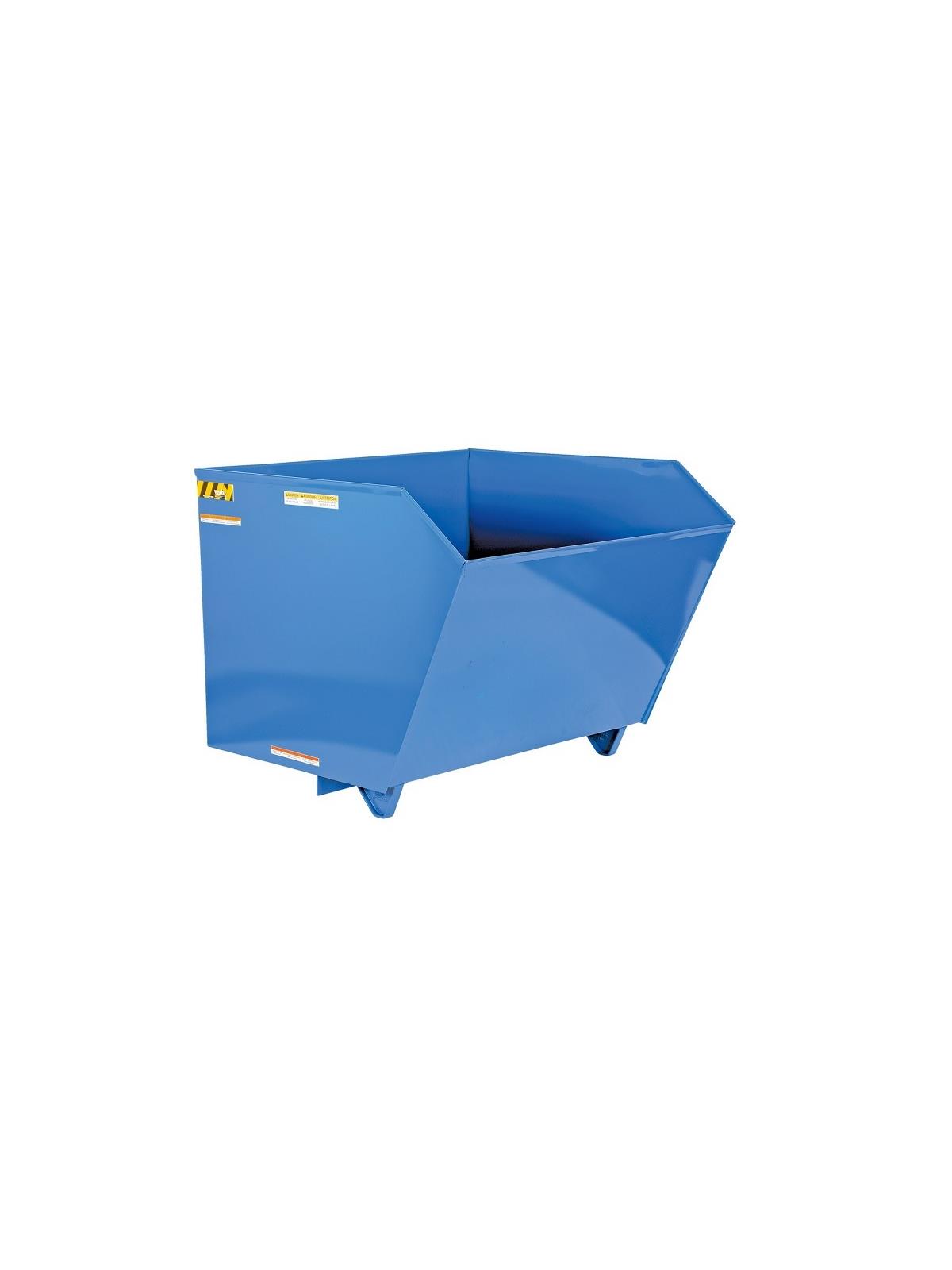 Units feature a full 90 degree dump angle with a cushioned rubber bumper stop. The low profile design is essential for convenient loading. Dumping with a fork truck is quick and simple. A cable is pulled from the seat of the fork truck to dump the hopper. The unit returns to an upright and locked position when lowered to the ground. The included safety restraint/chain must be securely attached to the lift truck without slack. 22" L usable fork pockets measure 7" W x 2"H. Formed base thickness is 1/4". Blue baked-in powder-coated toughness with a galvanized base. Other colors available-contact factory. Models H-25 may be stacked with H-50 models, while the H-100 can be stacked with the H-150 models. The H-200 hoppers can only be stacked with other H-200 series models. Must be attached to fork truck when dumping. FOB Shipping Point.