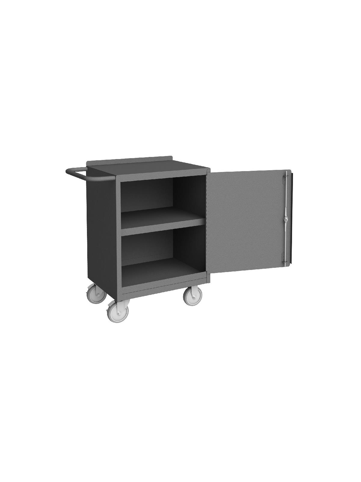 Unit features back and end stops on the work surface. Bolt-on 5 x 1-1/4" polyurethane casters, 2 swivel and 2 rigid with side brakes. Cabinet compartment comes equipped with one adjustable shelf and a keyed handle with 3 point locking system. Models with -TH in the part number include a work surface with 1/4" thick tempered hardboard. Drawers measure 20-7/16" W x 14-11/16" D x 5-7/8" H. Ships fully assembled and ready to use. FOB Shipping Point.