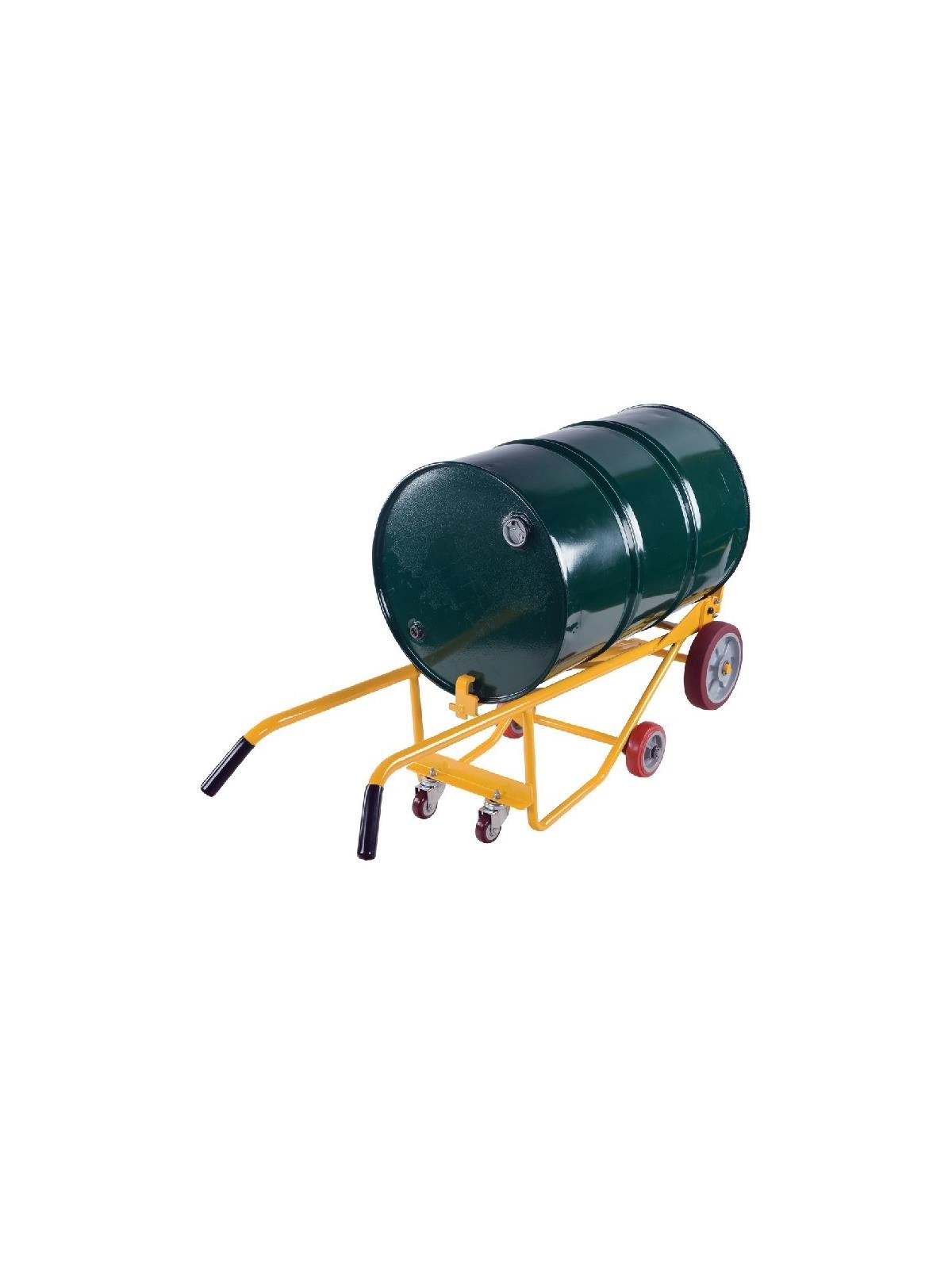 This innovative product allows the operator to easily tip back the truck in order to transport drums ergonomically on 4 wheels - and acts as a drum cradle for storage and dispensing all in one. Top angle is 3° when used as a Drum Cradle. This unique design also allows the operator to retrieve drums on and off the pallet. Accommodates 55 gallon steel, plastic or fiber drums. Rolls smoothly on (2) 10" x 2-1/2" wheels (see wheel description in chart), (2) 6" x 2" poly-on-poly wheels and (2) 3" x 1-1/4" poly-on-poly casters. Standard with a wheeled undercarriage that positions the drum horizontally for drainage or storage. An integral self-storing bung wrench is standard - opens numerous drums and helps keep the drum snug on the truck. Drum height is 12-13/16"H in the cradle position. Durable powder coat finish. FOB Shipping Point.