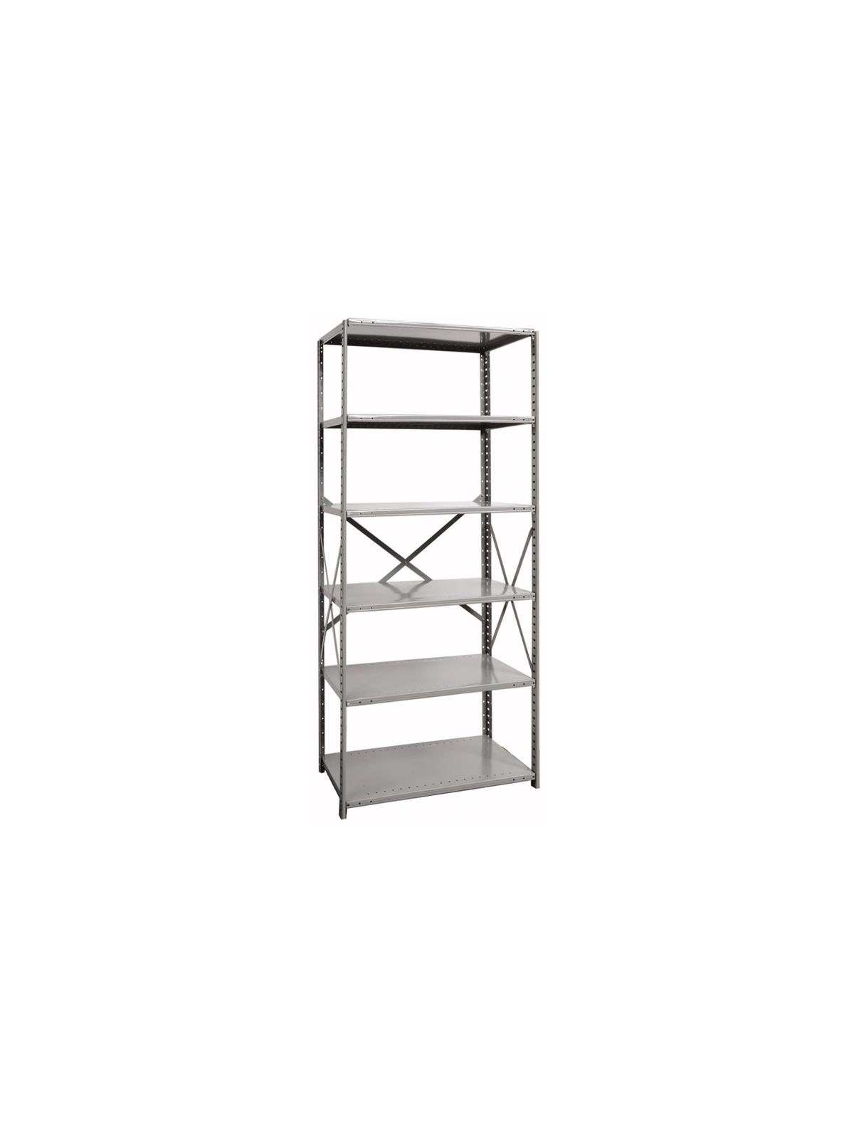 Shelves are box formed at front and back allowing high capacity storage with minimal deflection. Sides of shelves are triple flanged adding to shelf strength. Compression shelf clips improve overall unit capacity. Posts are punched to allow shelves to be adjusted top to bottom at 1-1/2” on center. Beaded front posts allow use of full shelf width and are common between adjoining units reducing assembly and installation time as well as reducing cost. Angle back posts can be bolted together when joining units side-by-side or back-to-back. Side and back sway braces eliminate units sway providing a safe storage solution. Color: Dark Gray (HG). FOB Shipping Point.