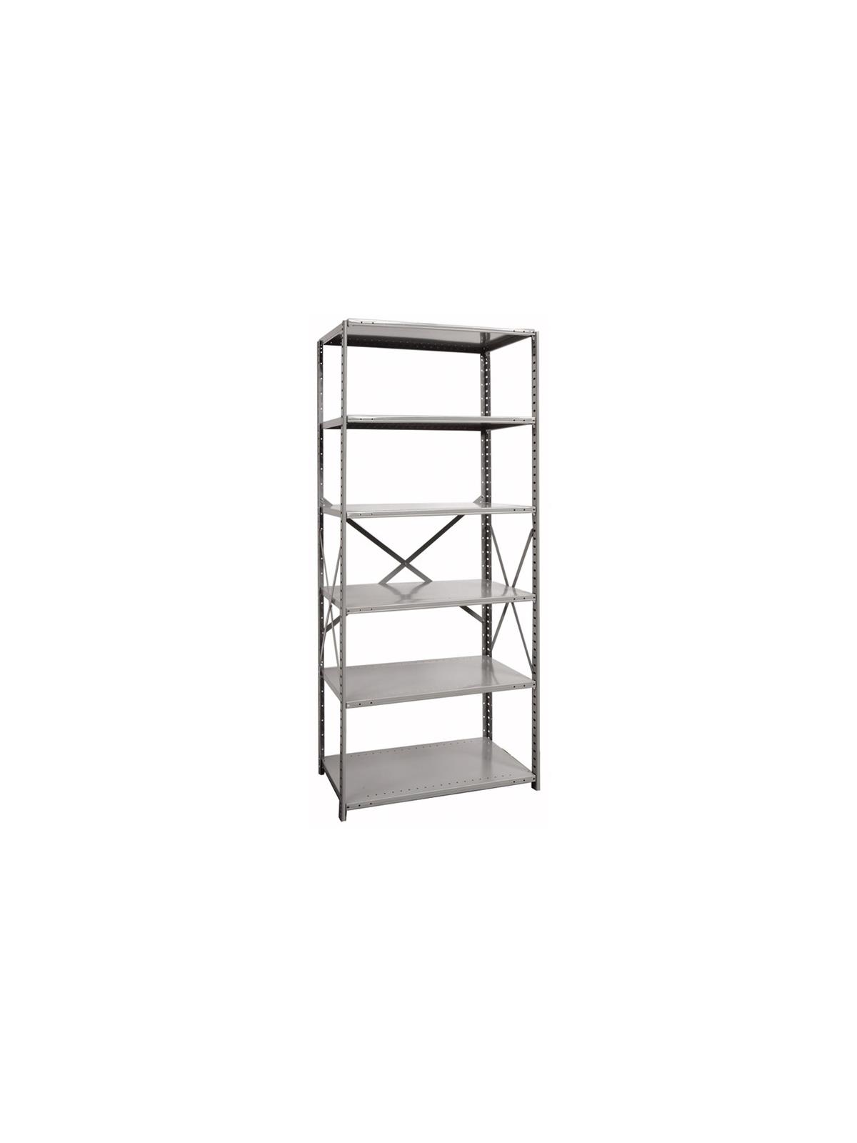 Shelves are box formed at front and back allowing high capacity storage with minimal deflection. Sides of shelves are triple flanged adding to shelf strength. Compression shelf clips improve overall unit capacity. Posts are punched to allow shelves to be adjusted top to bottom at 1-1/2” on center. Beaded front posts allow use of full shelf width and are common between adjoining units reducing assembly and installation time as well as reducing cost. Angle back posts can be bolted together when joining units side-by-side or back-to-back. Side and back sway braces eliminate units sway providing a safe storage solution. Color: Dark Gray (HG). FOB Shipping Point.