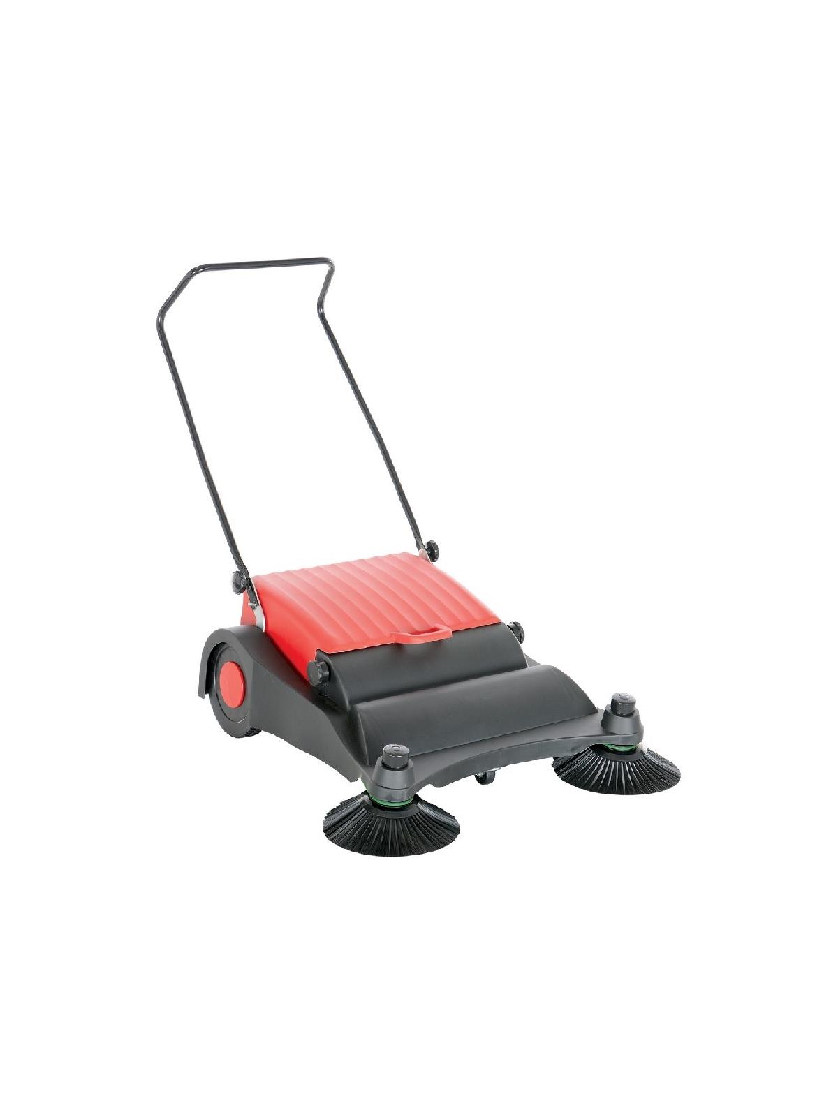 Use these sweepers anywhere, indoors or out, on concrete, asphalt, tile, and commercial carpets. Great for parking lots, gas stations, theaters, warehouses, schools, etc. The rotation of the wheels causes the brushes to rotate and pick up material. The side broom allows for cleaning along curbs, walls, and in corners. Contains no electric motor. FOB Shipping Point.