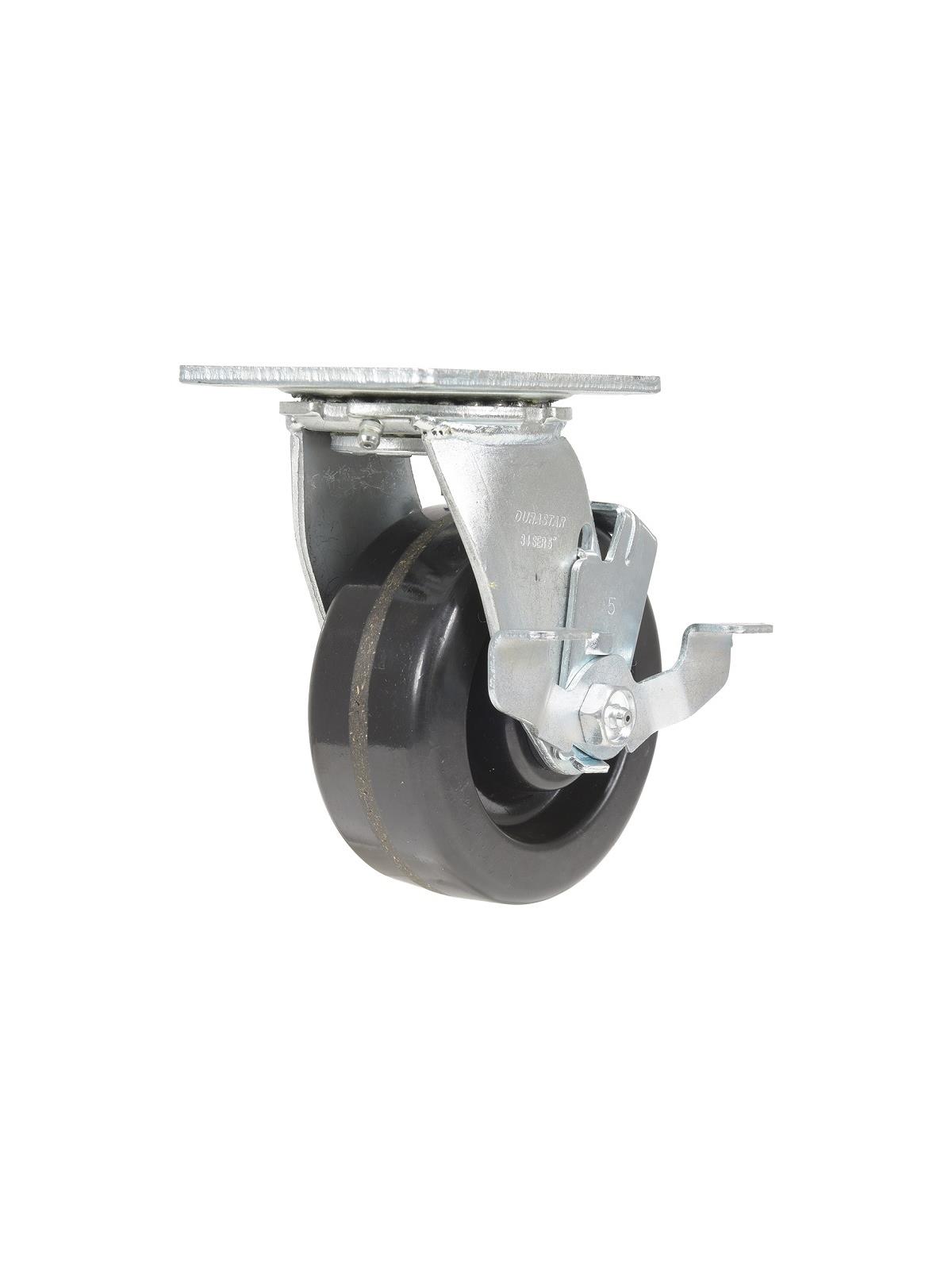 Phenolic wheels have a high resistance to impact damage, while providing protection for floors in commercial and industrial settings. Resistant to water, oil and grease. It is also spark resistant and operates in a wide temperature range. Black tread color. Wheel core is phenolic. 100 Shore A. FOB Shipping Point.