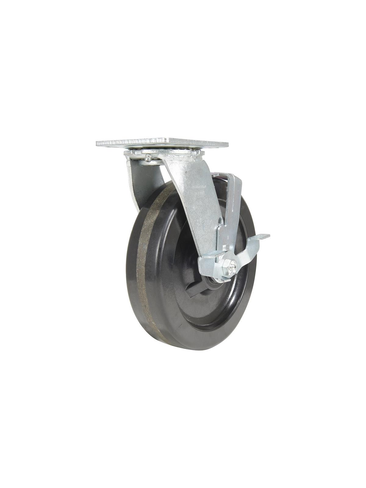 Phenolic wheels have a high resistance to impact damage, while providing protection for floors in commercial and industrial settings. Resistant to water, oil and grease. It is also spark resistant and operates in a wide temperature range. Black tread color. Wheel core is phenolic. 100 Shore A. FOB Shipping Point.
