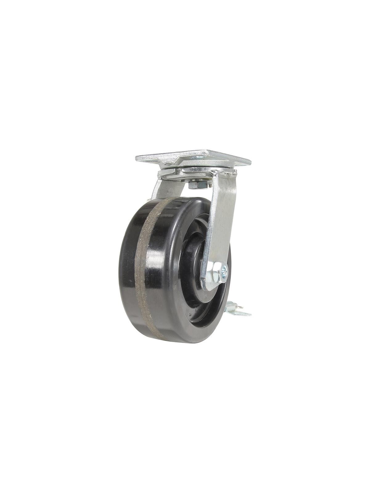Phenolic wheels have a high resistance to impact damage, while providing protection for floors in commercial and industrial settings. Resistant to water, oil and grease. It is also spark resistant and operates in a wide temperature range. Black tread color. Wheel core is phenolic. 100 Shore A. FOB Shipping Point.