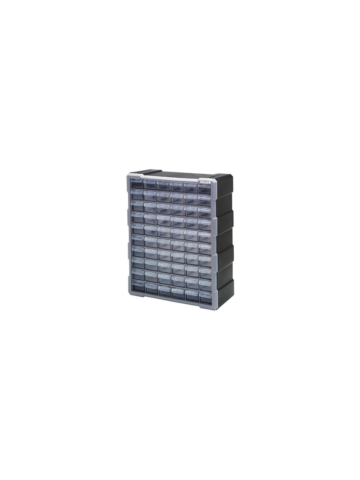 Heavy-duty reinforced construction with durable high impact polypropylene frame and clear polypropylene drawers and bins. See through drawers come with drawer dividers for every drawer. Stable stacking and mounting. Drawer stops prevent spills. Textured drawer pulls. FOB Shipping Point.