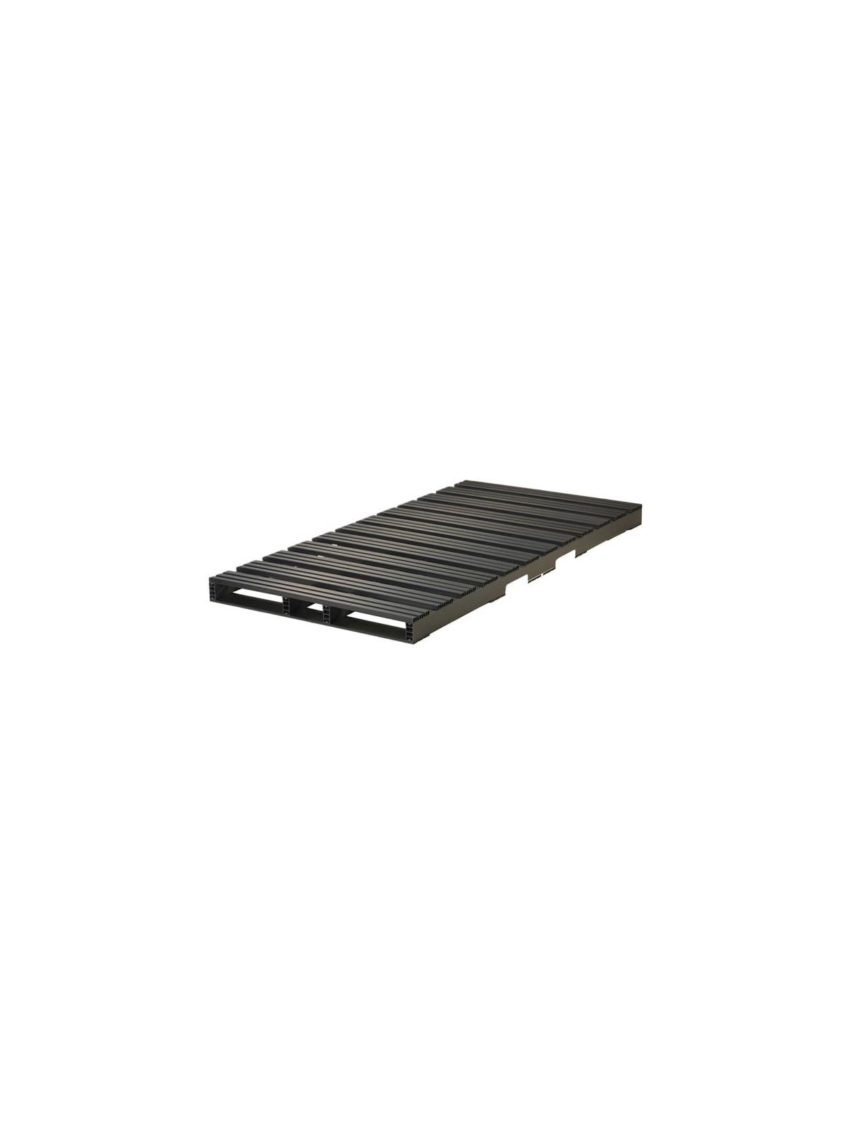 Pallets are made from recycled rigid PVC and will vary in color (shades of gray to black), weight and surface consistency.