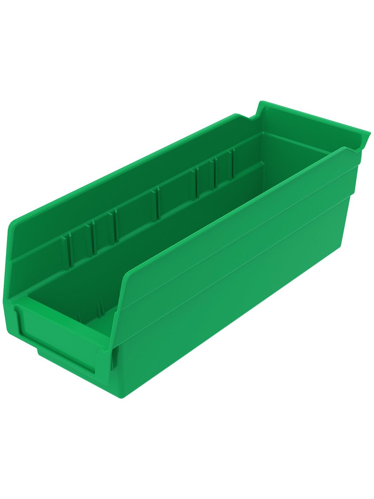 Outlasts corrugated bins - pays for themselves in reduced replacement costs. One-piece construction is waterproof and unaffected by grease or oil. Works with 12", 18" and 24" deep shelving, or vertical storage and retrieval units. Labels available. Available in 22 sizes and five colors - Red, Yellow, Blue, Green, or Semi-Clear. FOB Shipping Point.