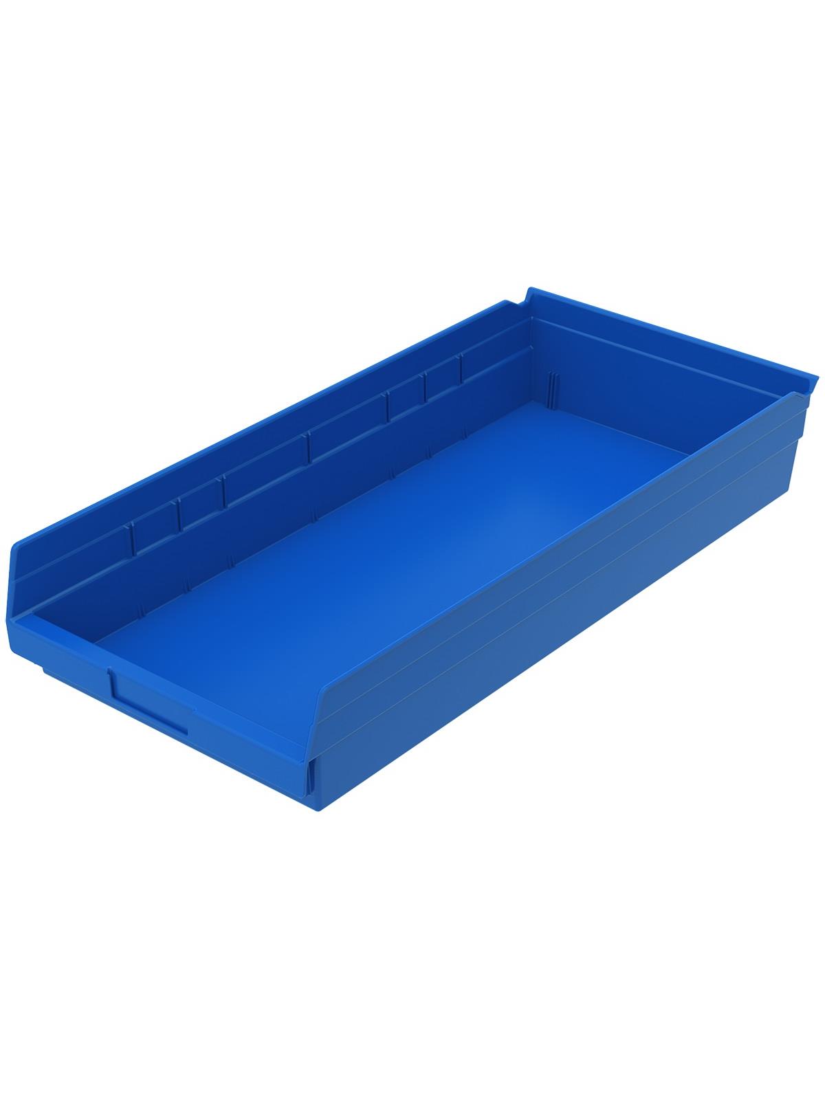 Outlasts corrugated bins - pays for themselves in reduced replacement costs. One-piece construction is waterproof and unaffected by grease or oil. Works with 12", 18" and 24" deep shelving, or vertical storage and retrieval units. Labels available. Available in 22 sizes and five colors - Red, Yellow, Blue, Green, or Semi-Clear. FOB Shipping Point.