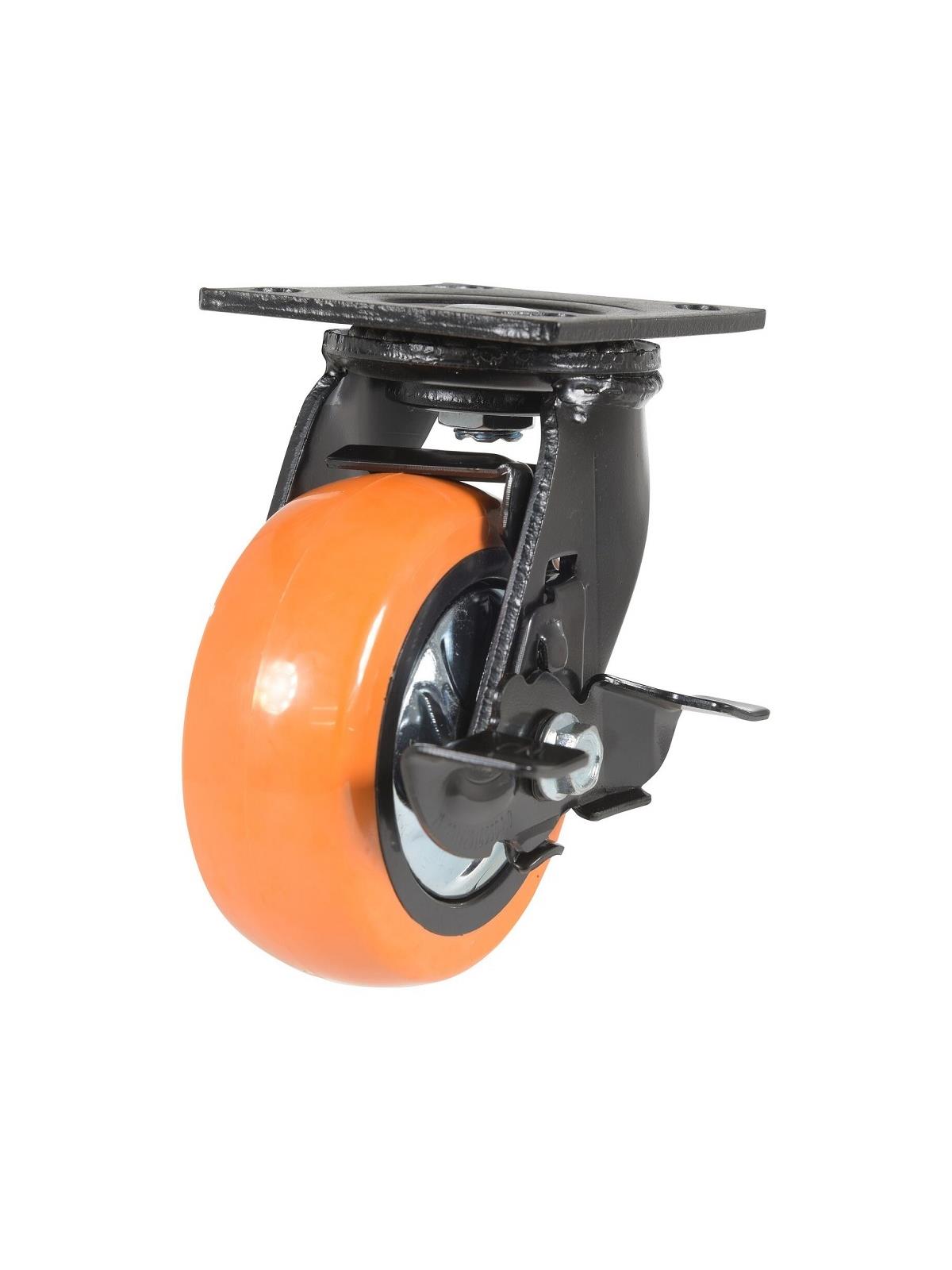 The perfect asset for an assortment of commercial and non-commercial settings. Swivel design allows the user to maneuver and change directions instantaneously. Wheel core is made of polypropylene. 95 /-5 Shore A. FOB Shipping Point.