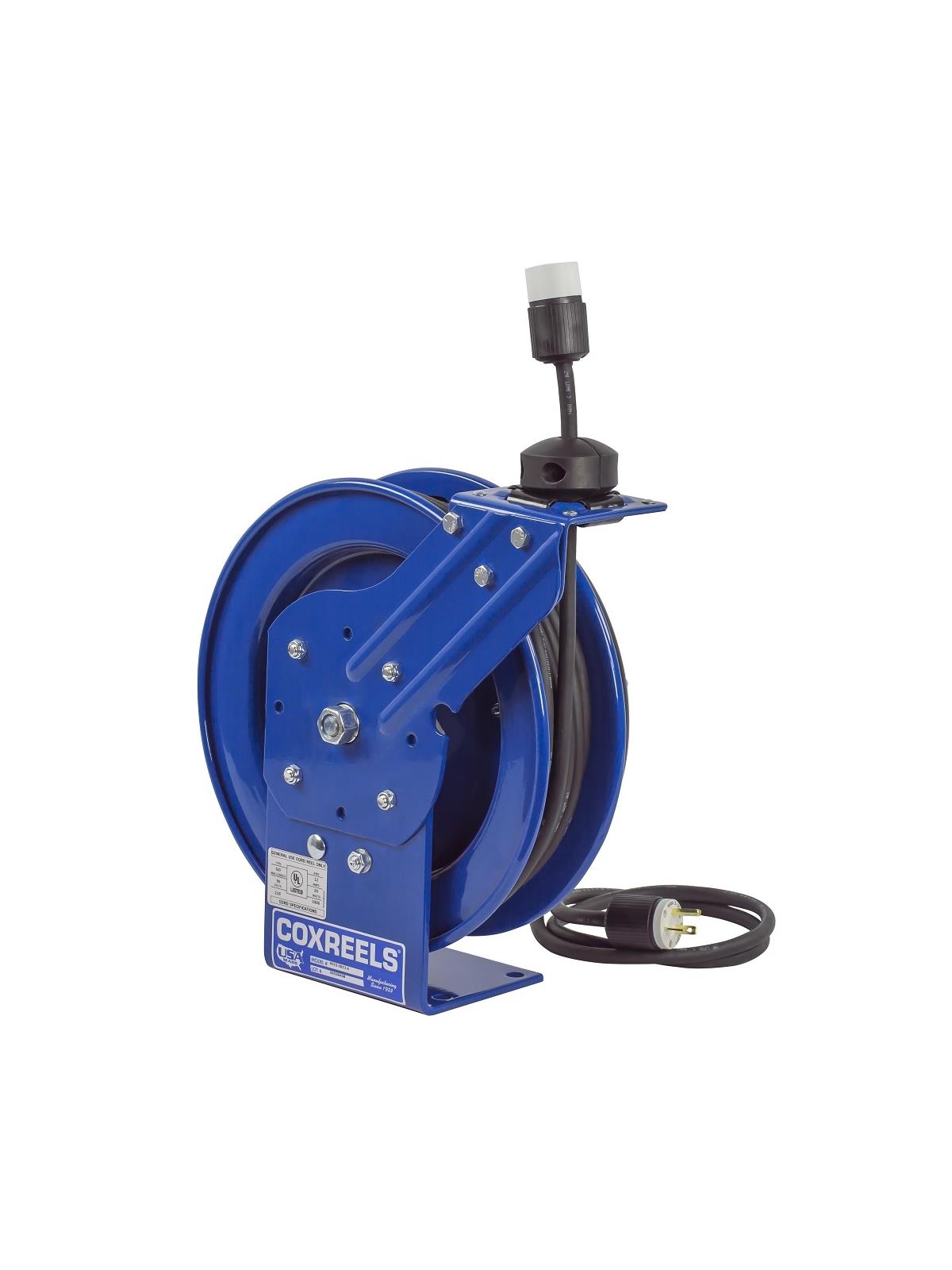 Solid steel construction is built to perform under the toughest of working conditions, for indoor use only. Self-retracting with cartridge style spring motor. Eight position locking ratchet. 4-roller non-snag cord guide. Features adjustable arm guide and cord stop. Supplied with 5' pigtail and 3 prong plug. 115 V. 60hz single phase only. Measures 8-1/2"W. x 14-7/8"H. x 13-1/2"L. FOB Shipping Point.