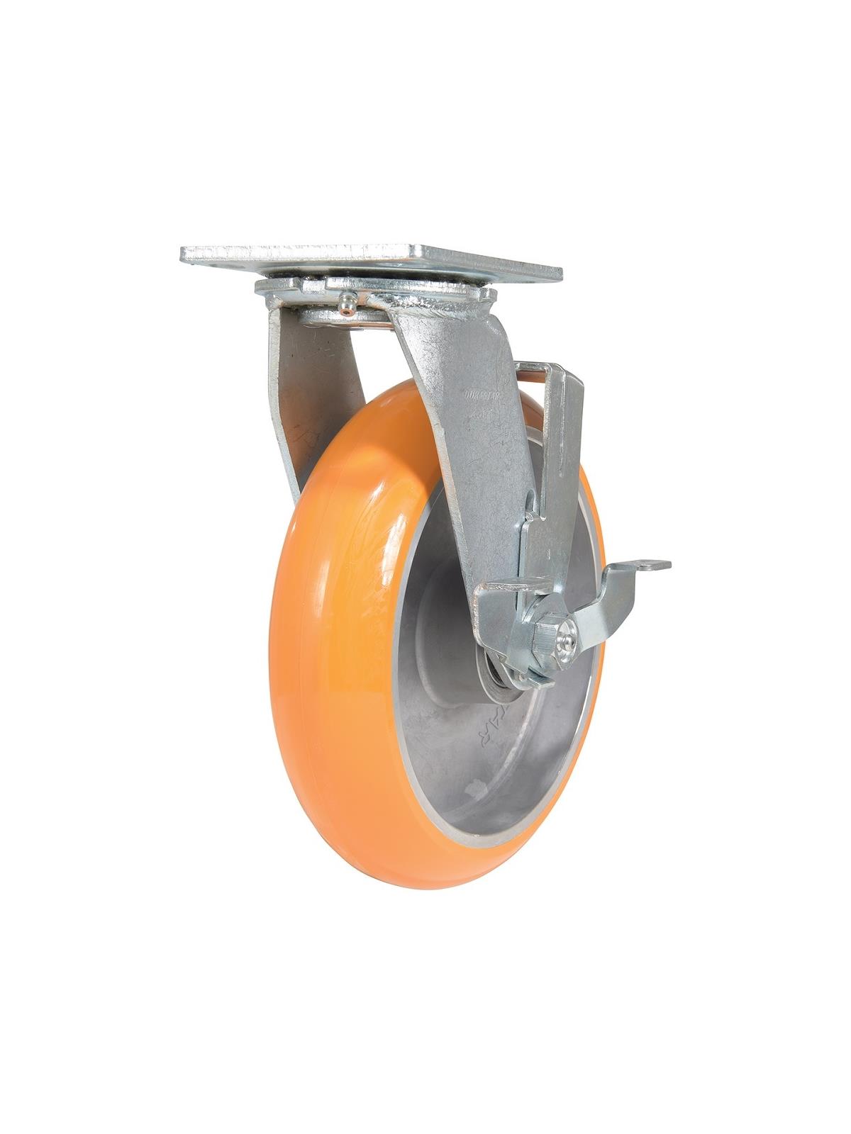 Made of exclusive proprietary donut tread. This caster comes with 6203 precision ball bearings and is bonded to a lightweight water-resistant aluminum core. The high grade elastic polyurethane reduces the force needed for movement and dampens vibrations for a smooth quiet roll. It also deflects debris, which strengthens its longevity and durability. Top plate size 4" x 4-1/2". FOB Shipping Point.