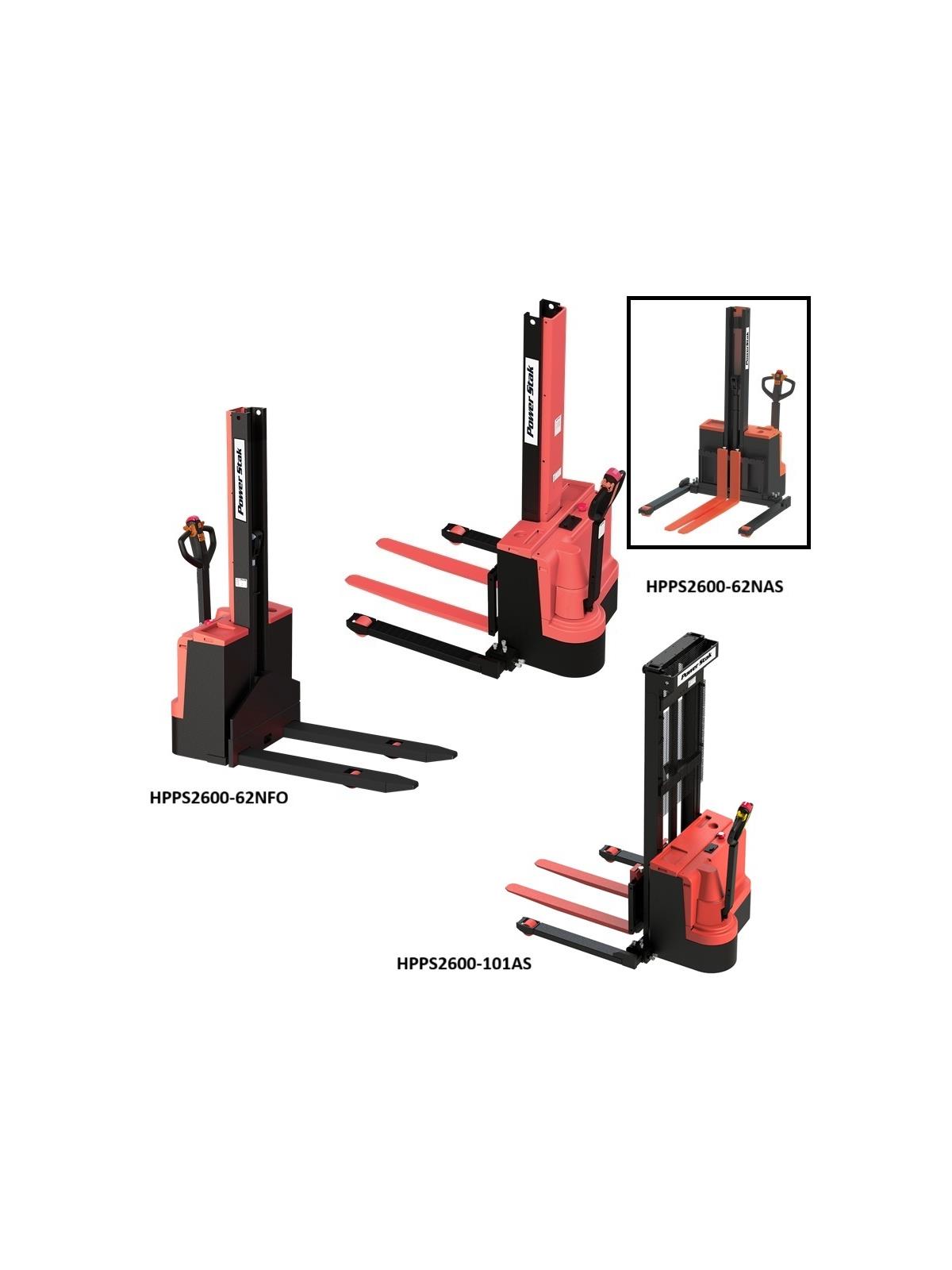 Curtis controller that features 24V AC with CAN Bus electrical system. Forged, 4"W x 42"L, forks painted safety orange (straddle models only). Class 2 carriage with multiple locking positions. Newly designed tiller handle with keypad, turtle speed, horn and battery discharge indicator. Polyurethane, non-marking load wheels. Power-on function. FOB Shipping Point.