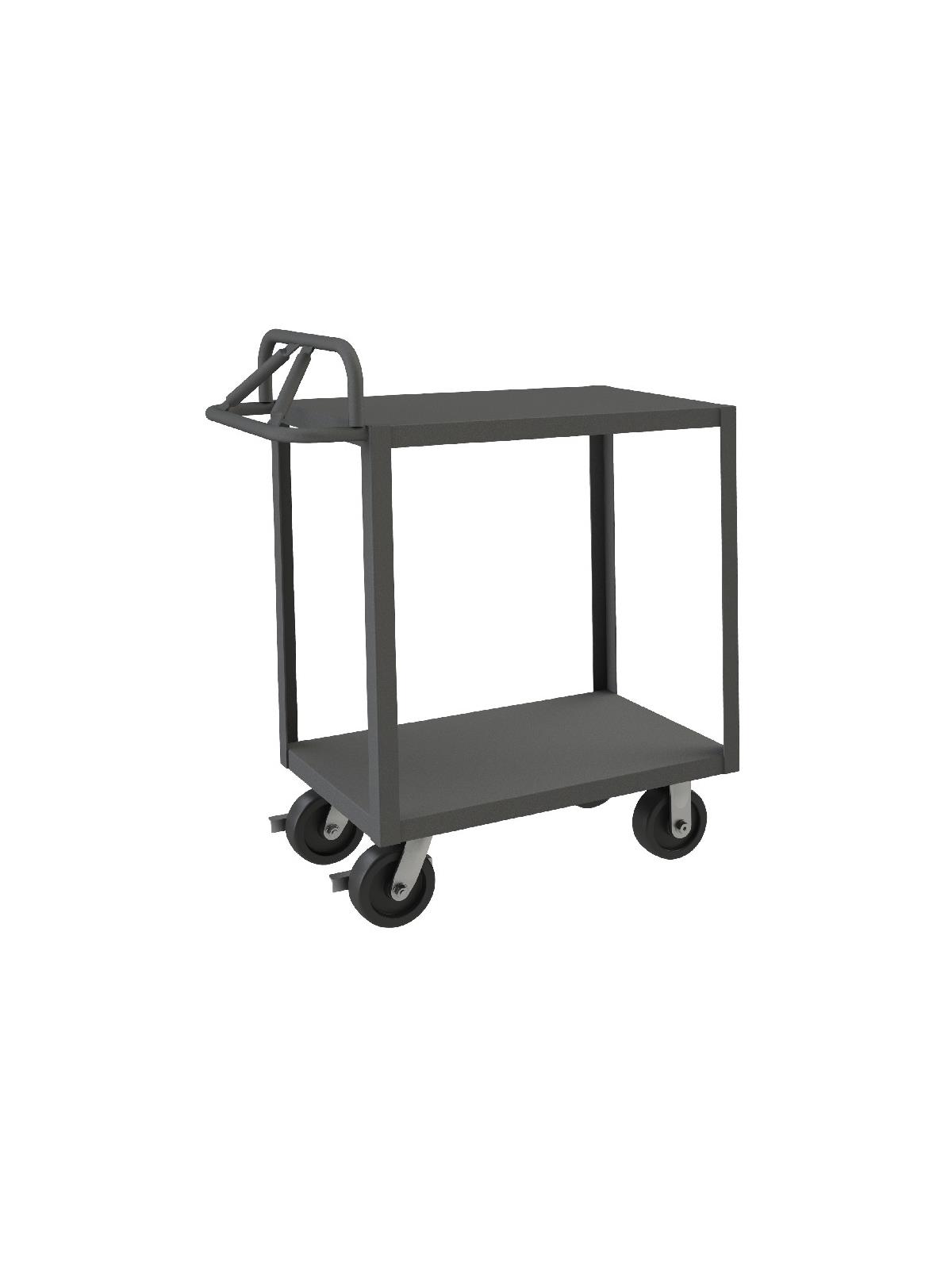 Constructed with 1-1/2" x 1/8" angle iron uprights for added strength. Heavy duty 14 gauge steel shelves. Sturdy, tubular, ergonomic handle has 3 positions ensuring maximum comfort. Standard units have 1-1/2" lips. ALD units have all lips down, TLD units have top lips down. Durable, gray, textured powder coat finish. FOB Shipping Point.