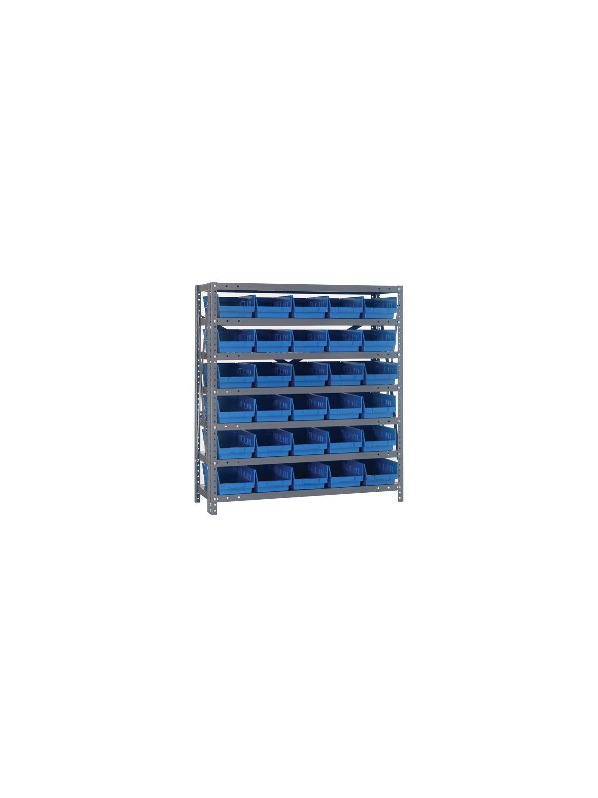 • Economical bin storage system includes durable Plastic Shelf Bins and a 36"W standard shelving.