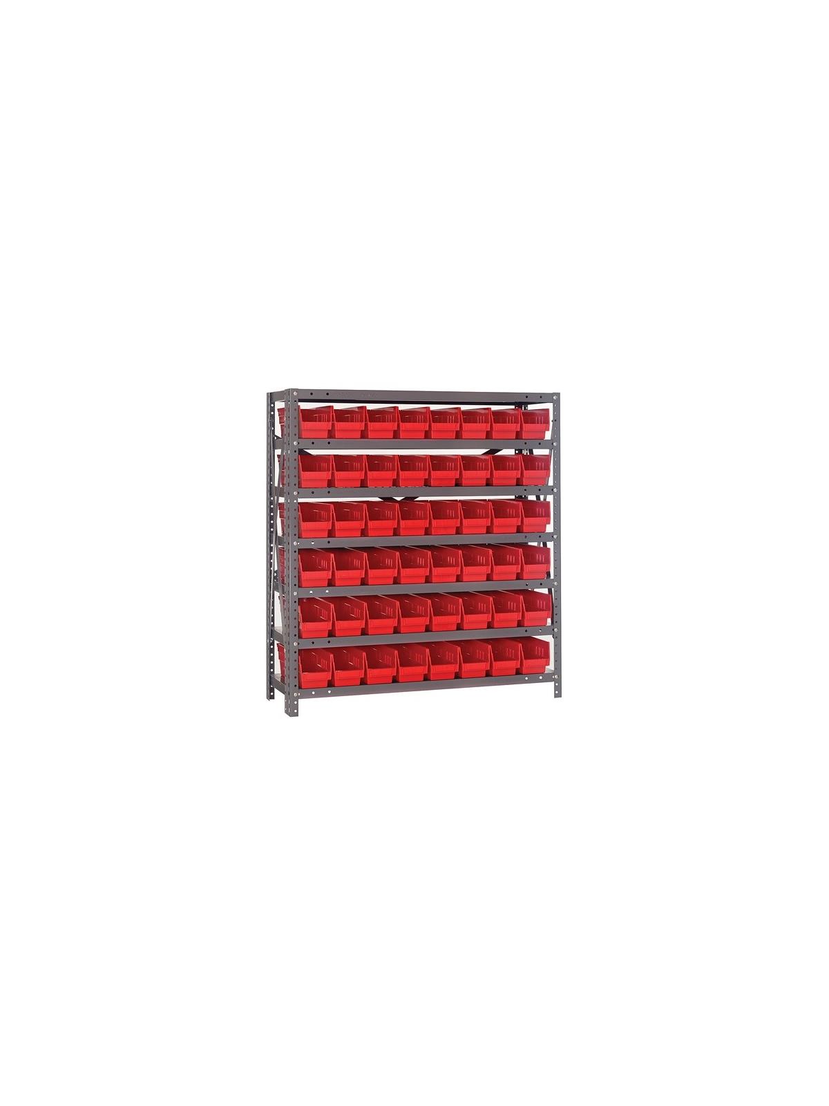 Rugged 350 lb. capacity per shelf, standard shelving unit will keep parts organized and readily accessible. Gray enamel finish will not rust or corrode. 12-HQSB100, 8-HQSB101, 5-HQSB102, 4-HQSB107, 3-HQSB109 fit across a standard 36"W x 12"D shelf. 8-HQSB103, 5-HQSB104, 4-HQSB108, 3-HQSB110 fit across a 36"W x 18"D shelf. Bins are available in Blue, Yellow, Red, Green, Ivory or Black. FOB Shipping Point.
