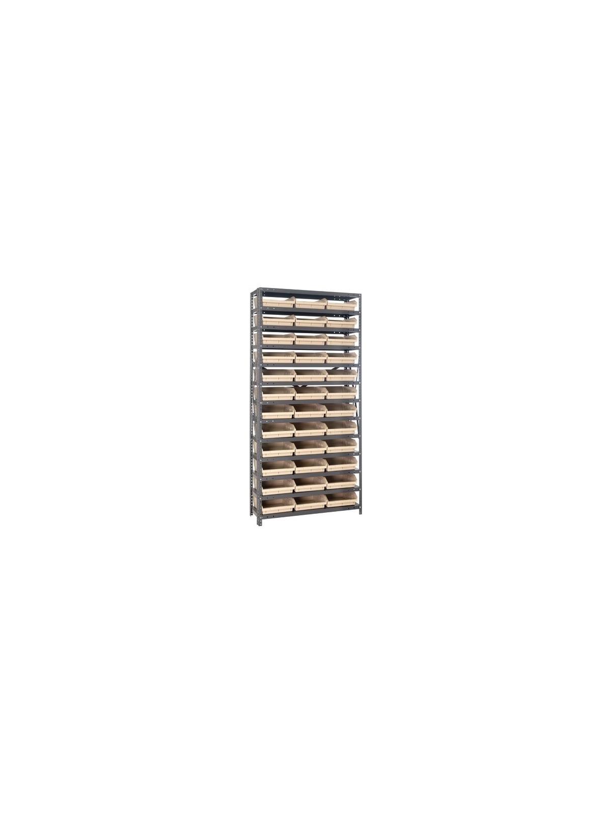 • Economical bin storage system includes durable Plastic Shelf Bins and a 36"W standard shelving.