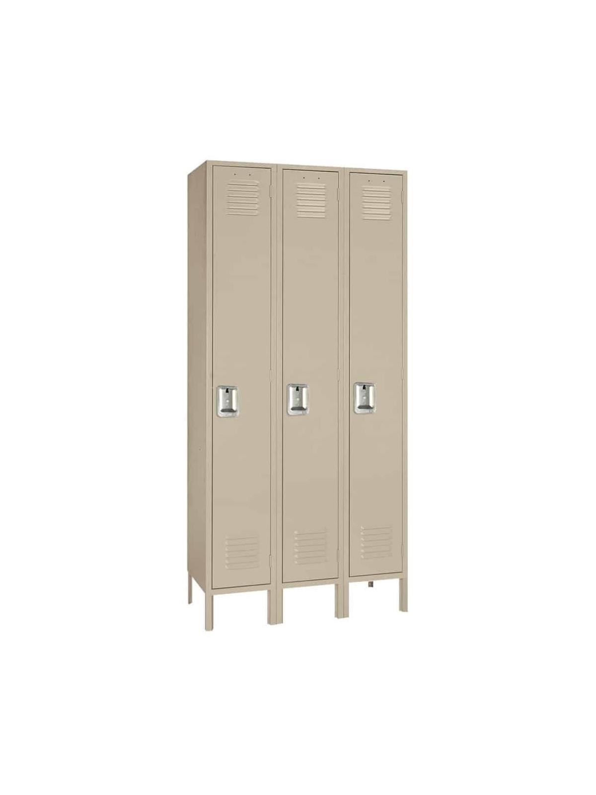 Single Tier Lockers - Features steel recessed handle and hooks for hanging clothing and other items. Single tier lockers also include a separate shelf.