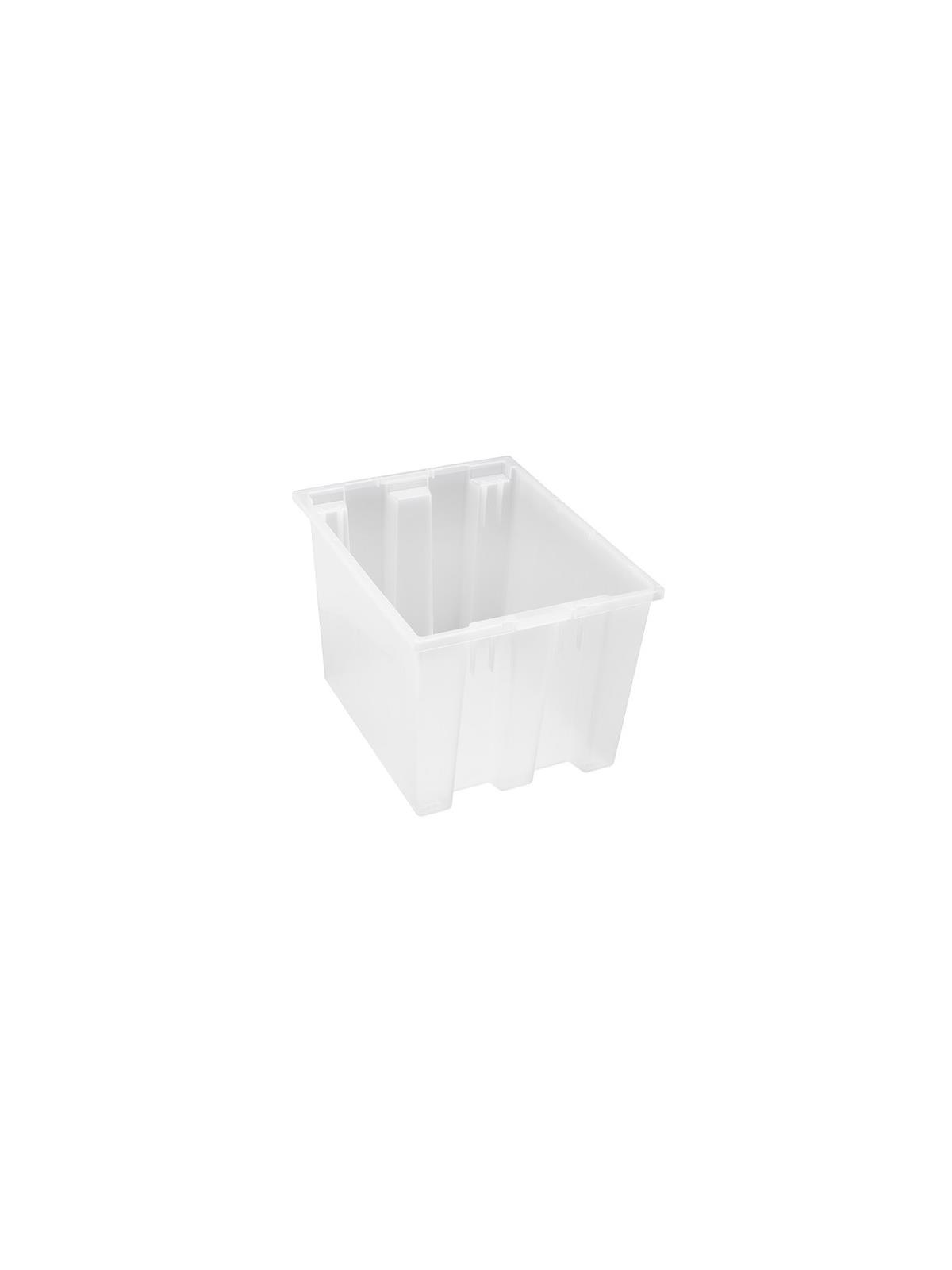 High density polypropylene, injection molded for uniform wall thickness and added strength. Lids snap tightly and securely for a safe fit. Quick 180° turn offers space-saving stacking and nesting. Stacks 6 high. Fits 48" x 40" pallets (6 SNT190, 4 SNT230 per level). Usable in temperatures from -­10° to 250°F. Available in Gray, Blue, Red or Clear. Optional clear, see-thru Stack and Nest Label Holder (HSNH010) and optional Dolly (HDLY-3018) available. FOB Shipping Point.