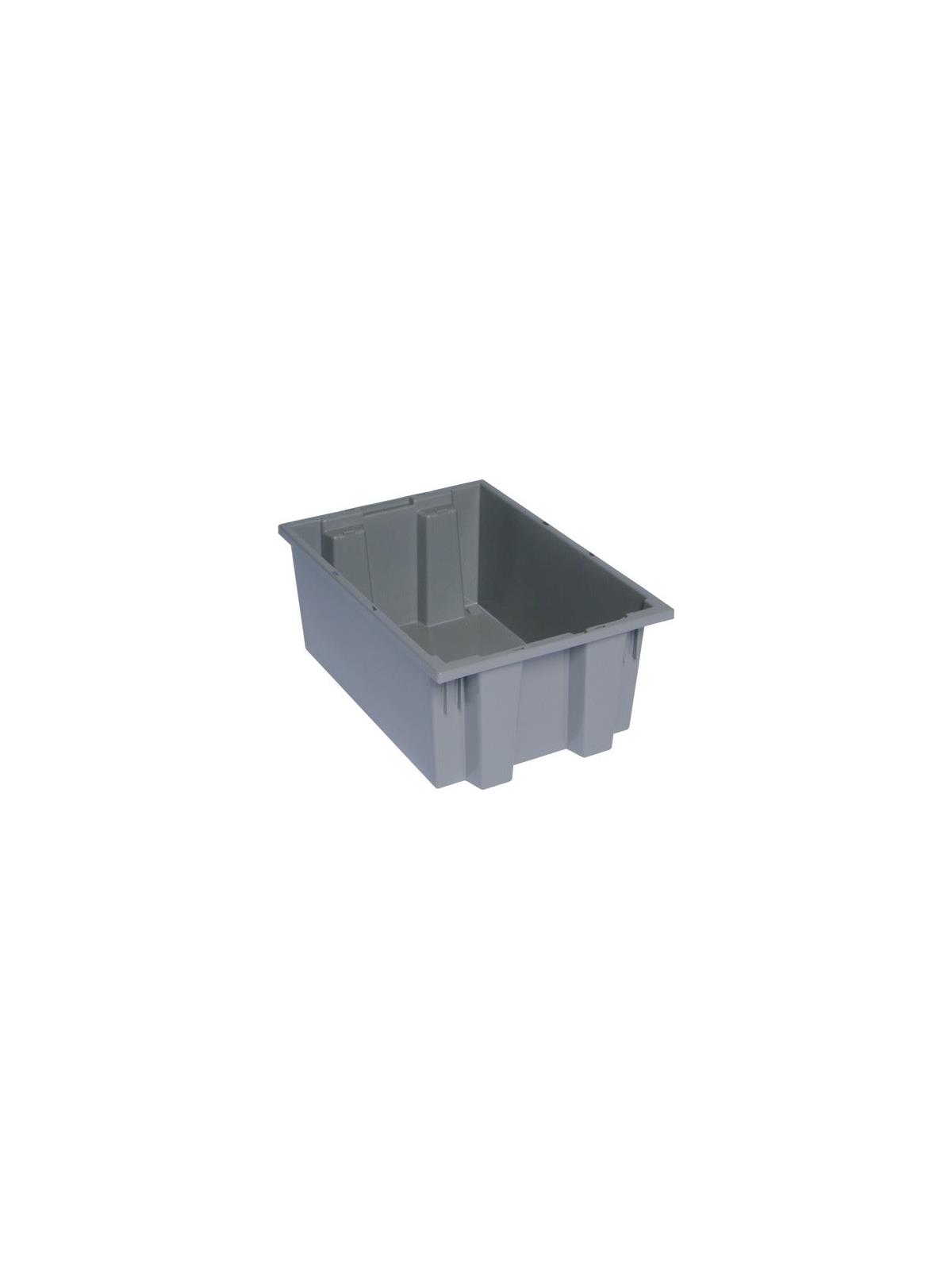 High density polypropylene, injection molded for uniform wall thickness and added strength. Lids snap tightly and securely for a safe fit. Quick 180° turn offers space-saving stacking and nesting. Stacks 6 high. Fits 48" x 40" pallets (6 SNT190, 4 SNT230 per level). Usable in temperatures from -­10° to 250°F. Available in Gray, Blue, Red or Clear. Optional clear, see-thru Stack and Nest Label Holder (HSNH010) and optional Dolly (HDLY-3018) available. FOB Shipping Point.