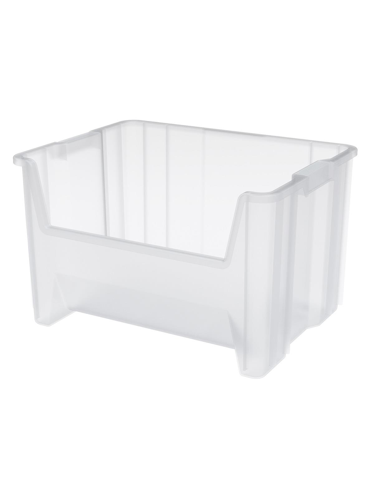 • Bins stack to form tall, stable storage arrangements on floors or standard shelving.