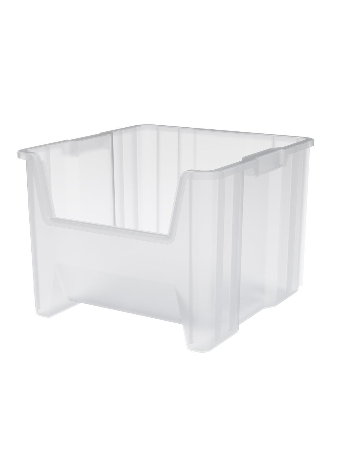 • Bins stack to form tall, stable storage arrangements on floors or standard shelving.