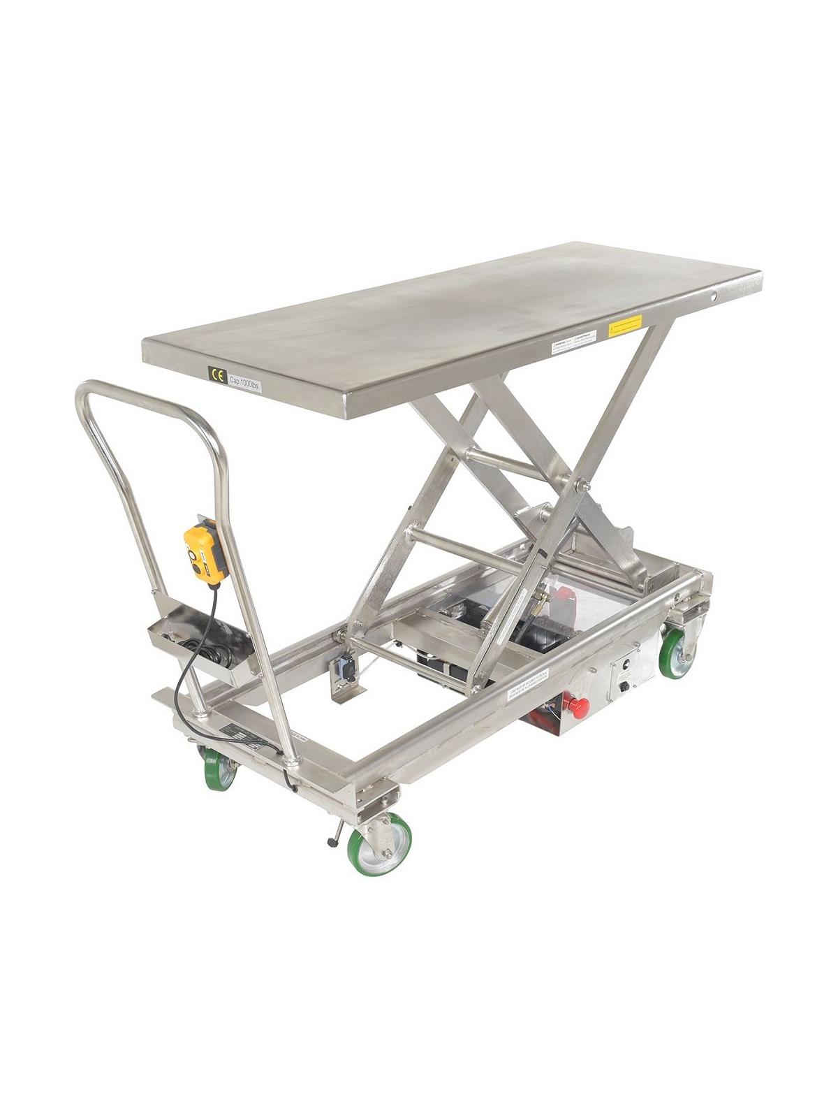 Our fully welded stainless steel carts resist corrosion and wet environments. -SS3 Models are made of 316 Stainless Steel. All parts on the -SS & the -SS2 models are made from 304 grade stainless steel, including the hydraulic pump and foot pedal. These carts are suitable for most food, medical, and pharmaceutical industry settings. Also suitable for wash-down applications. 2 rigid and 2 swivel polyurethane wheels with brakes standard.  FOB Shipping Point.