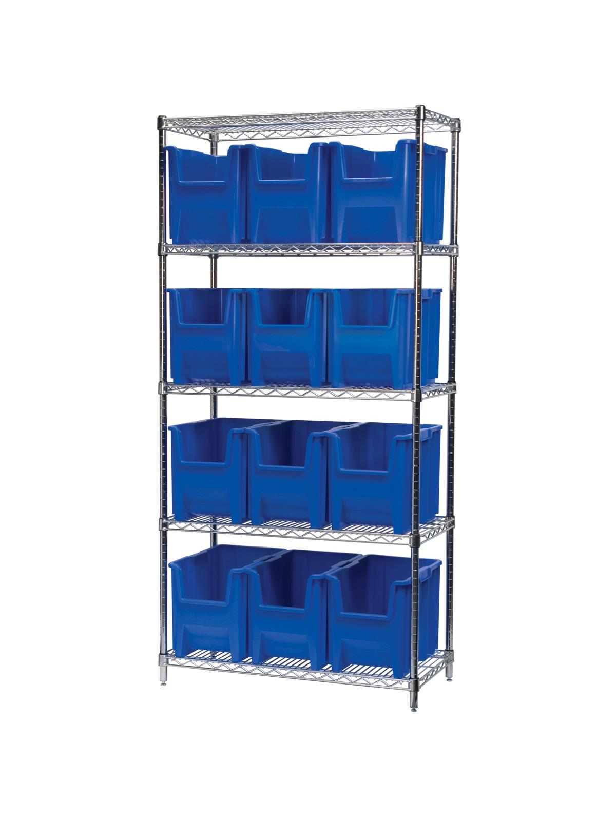 Available with shelves and come with 8, 9 or 12 bins. Bins feature a wide hopper front for easy access. Bins available in Blue, Red, or Gray. FOB Shipping Point.