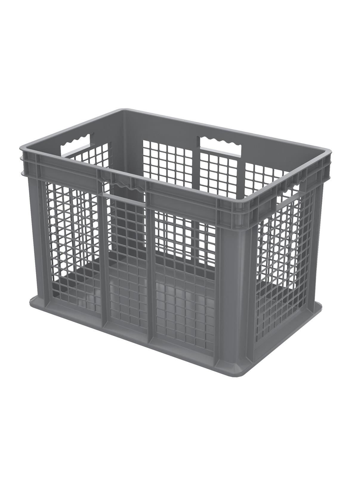 These straight wall containers have smooth inner walls that make cleaning easy and sanitary. The mesh sides allow excellent hot or cold air ventilation. Manufactured from injection-molded high-density polyethylene. Available in 4 sizes and 3 styles. Gray in color. FOB Shipping Point.