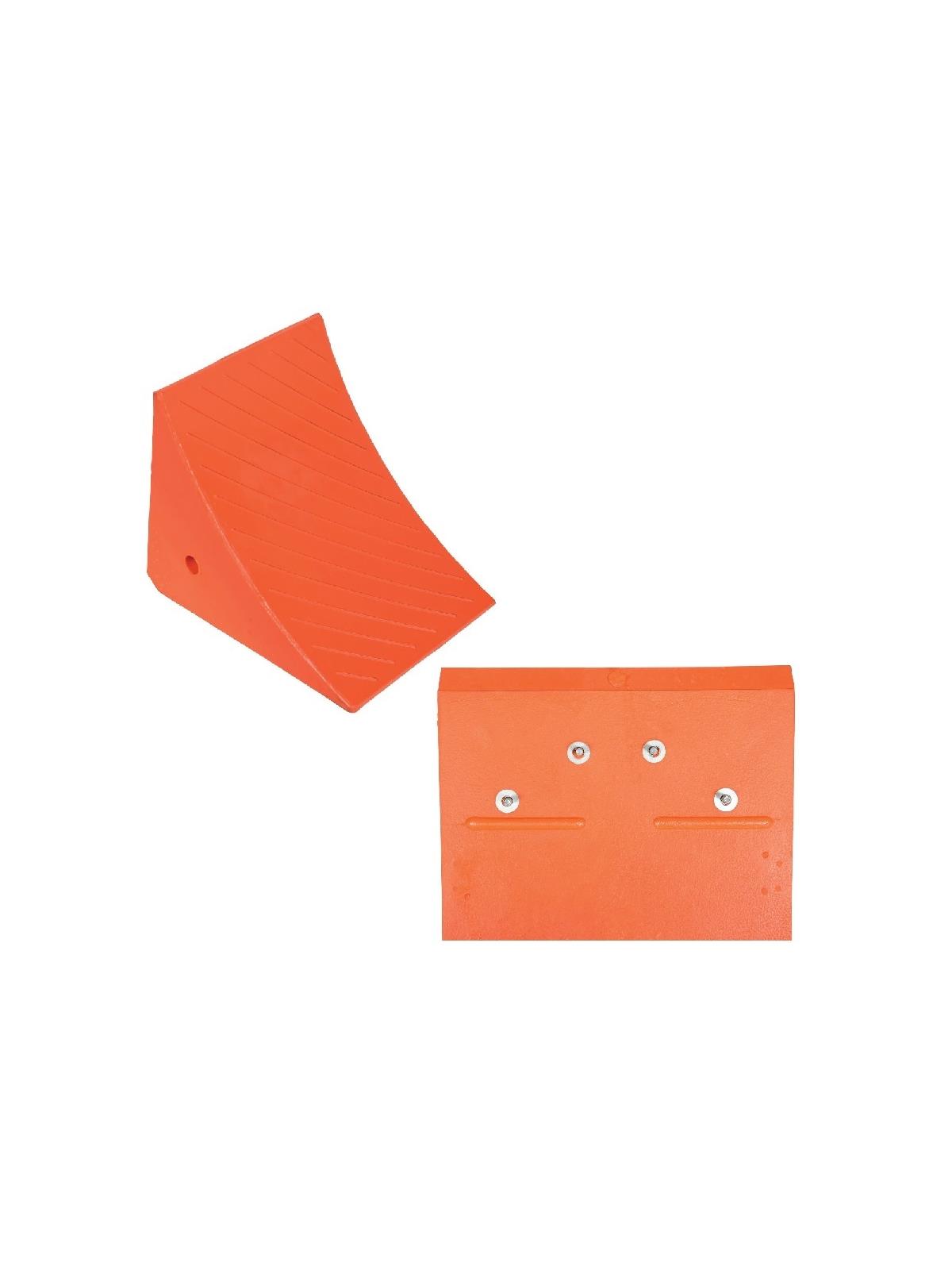 Bright orange for greater visibility. Incoming and outgoing drivers can easily see chock for added safety. Tread on chock face provides better grip. Extreme capacity models featured. FOB Shipping Point.