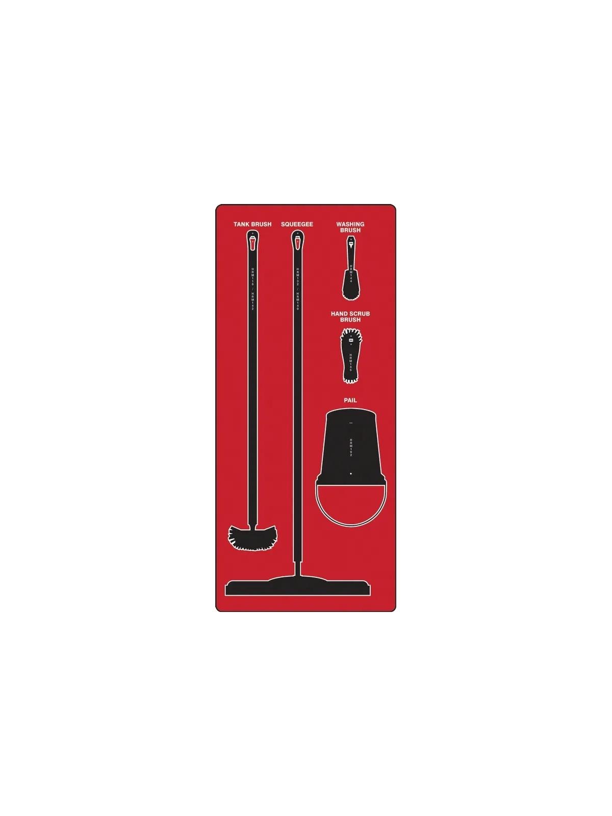 Designed for wet environments, color code your cleaning tools for distinct purposes. Keep general maintenance and cleaning tools organized, neat and always ready for use. Minimize downtime searching for tools by keeping them in one centralized location. Available in a variety of materials to match your environment: Ultra Aluma-Lite™, and Accu-Shield™. 4 color options available with your choice of either black or white tool shadows. Ideal for non-food contact & general maintenance. Promotes tool accessibility at point of use benefits. Maximizes efficiency, organization and accessibility. Minimizes wasted travel time to supply rooms/closets. Provides easy and fast janitorial solutions without added physical stress. Shadow Board Dimensions: 68"H x 30"W. Features 1/2" rounded corners and 3/8" mounting holes. Boards include mounting hardware for tools. Some assembly required: instruction and assembly hardware included. Due to size and/or weight, this product may need to ship LTL. FOB Shipping Point.