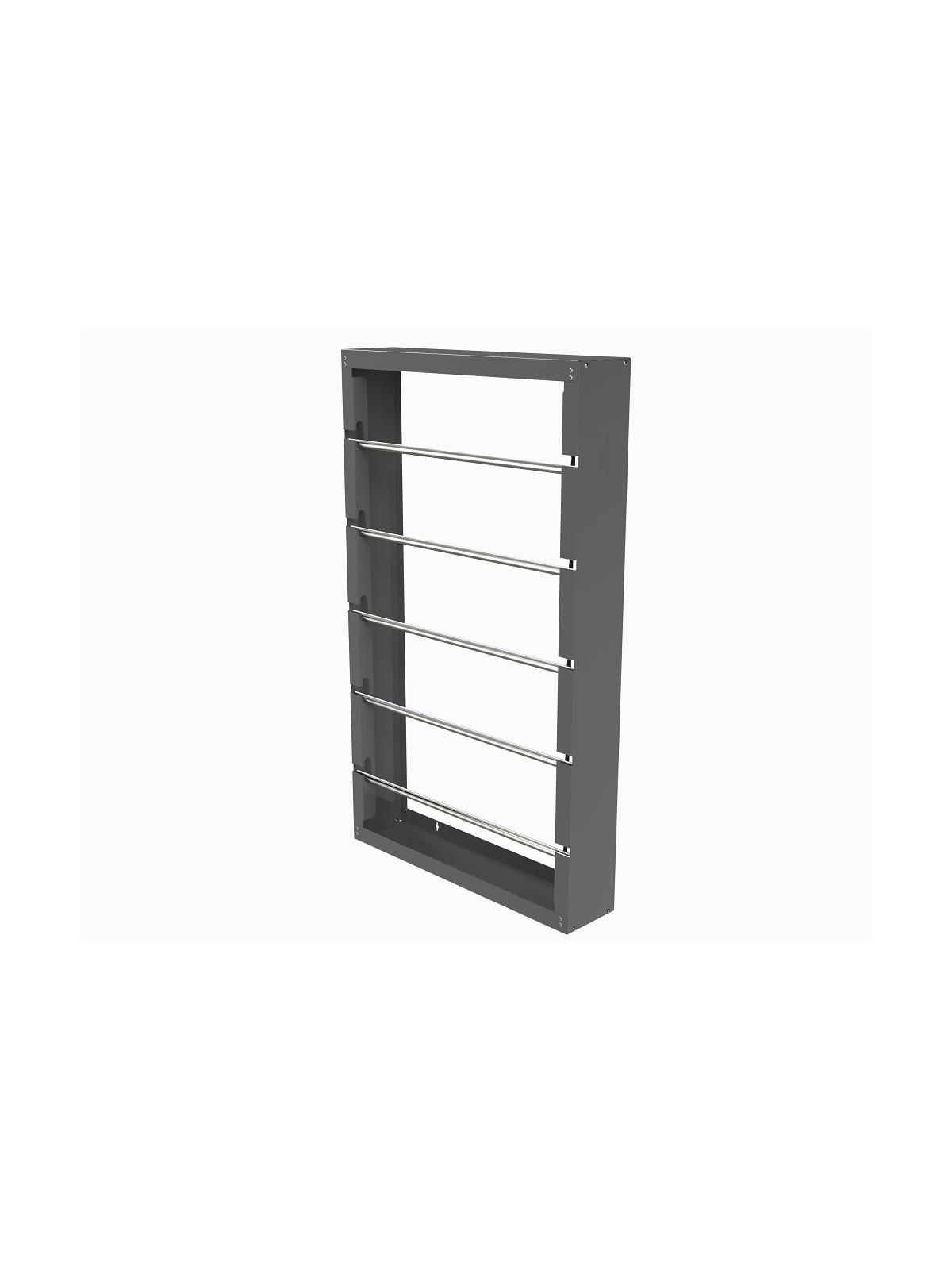 Prime cold rolled steel construction. Includes polished 5/8" dia. steel rods, making it easy to store different sized spools on the same rod. H368-95 can accommodate up to 10" dia. spools. Punched side panels allow for quick spool changes and the supplied ruled decal makes it easy to cut wire or tubing to the proper length. H383-95 has a handle for easy transport. Keyhole slots are provided for wall mounting. FOB Shipping Point.