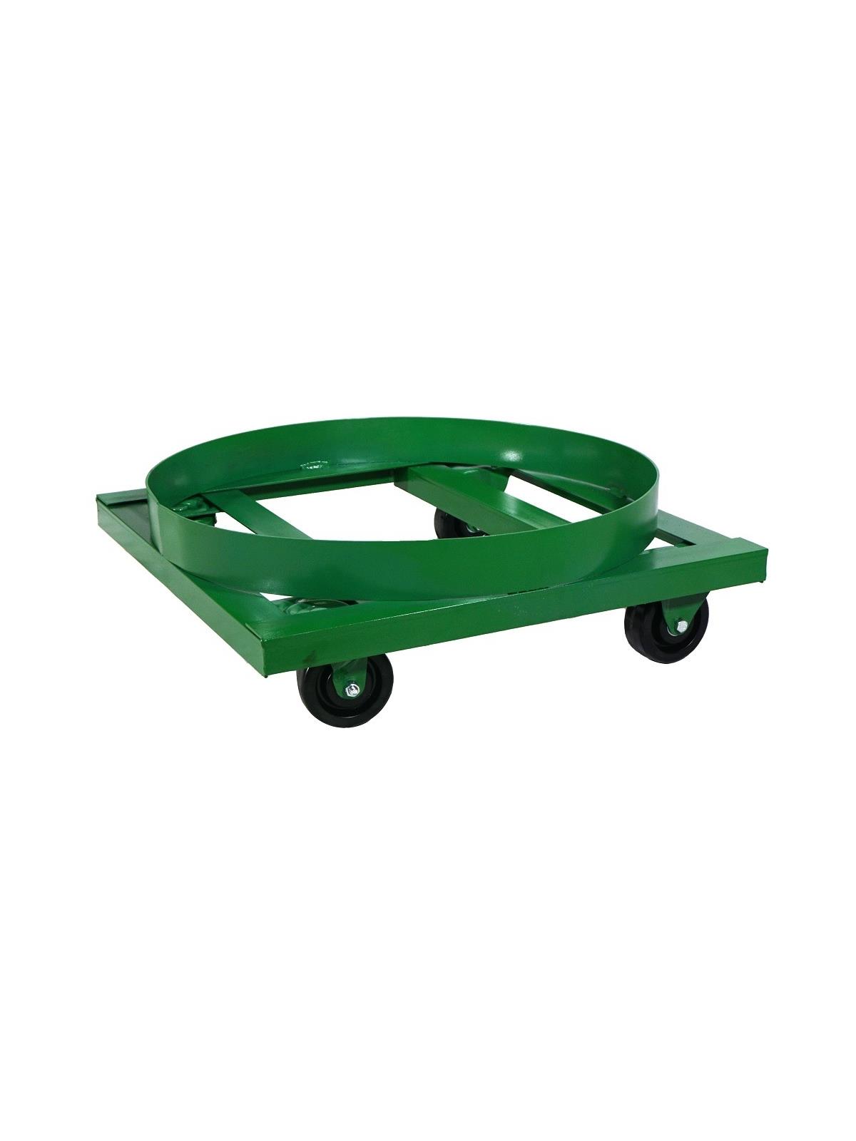 Angle Iron all welded construction. Deep, 2-1/5" lip frame helps stabilize drums. Two 4 x 1-1/2" phenolic swivel casters and two 4 x 1-1/2" phenolic rigid casters. FOB Shipping Point.